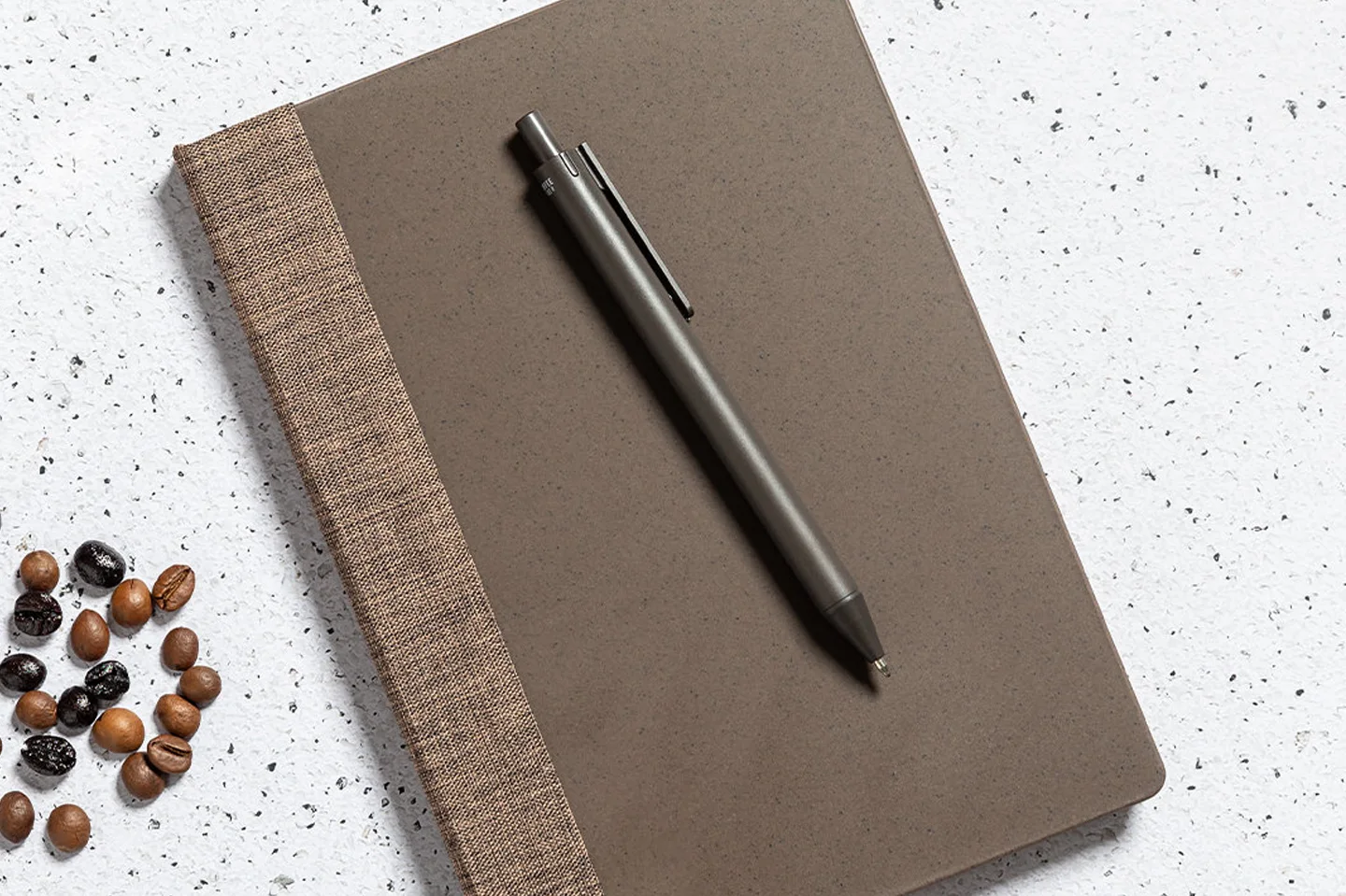 Στυλό Nature line, με σώμα από ίνες καφέ και ασορτί λεπτομέρειες. Μηχανισμός κουμπιού και μπλε μελάνι, με έμβλημα από ίνες καφέ στο σώμα.