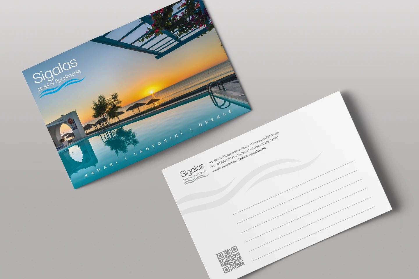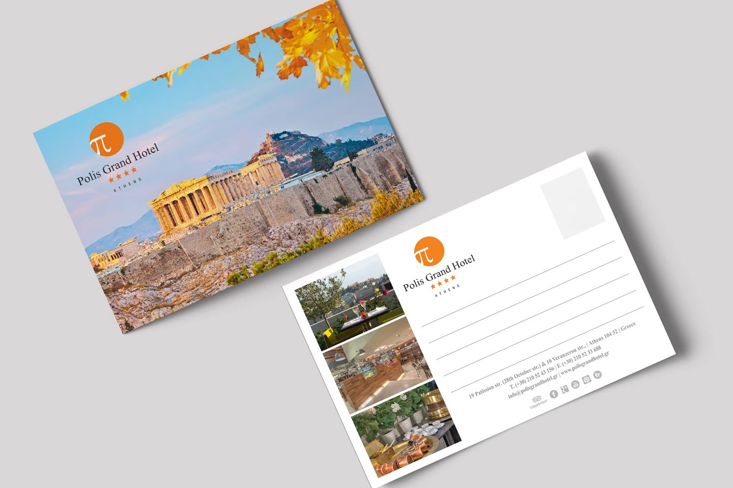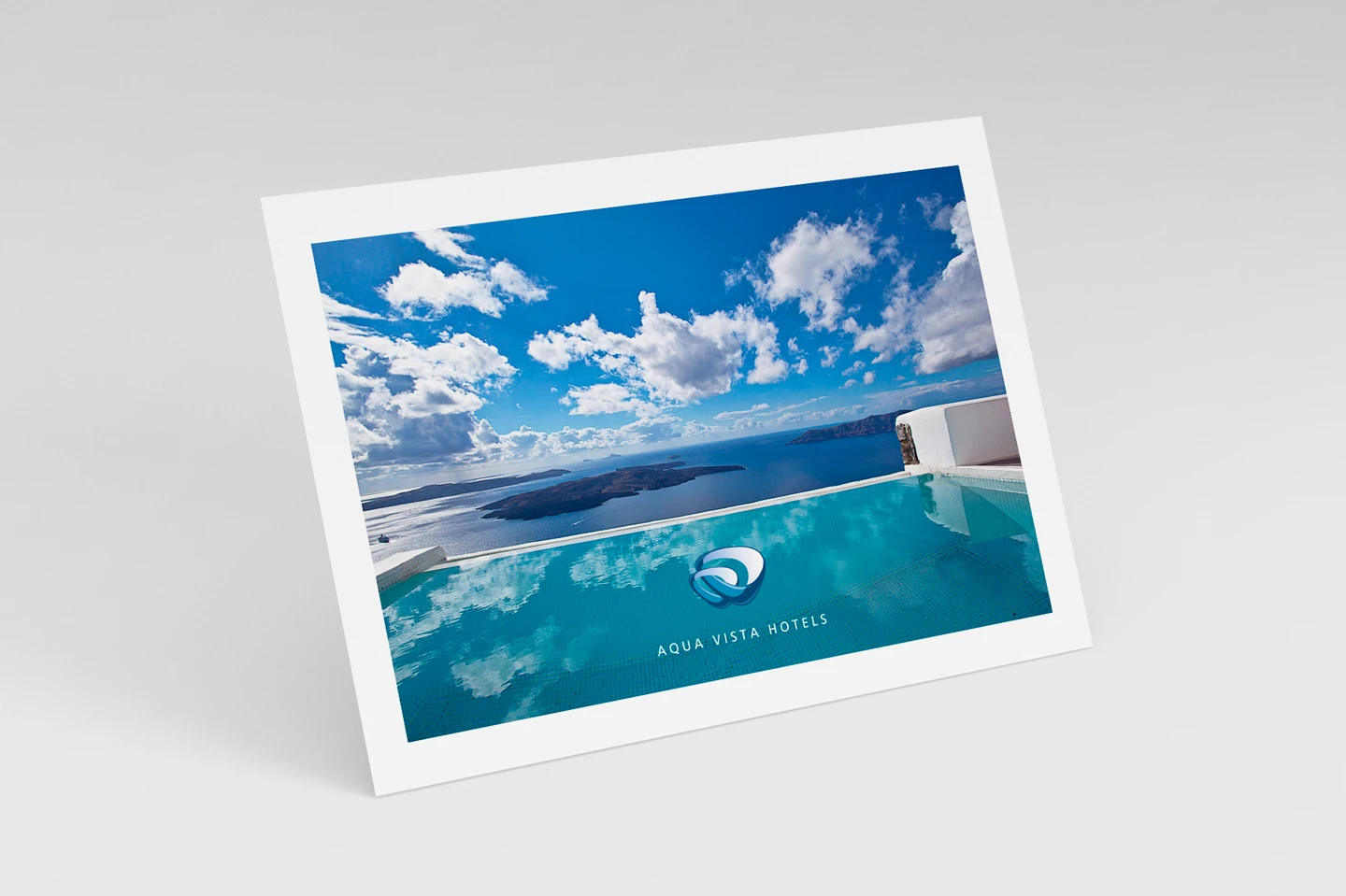 Στην εταιρία μας αναβαθμίζουμε την κλασική καρτ ποστάλ σε μία υψηλής αισθητικής επικοινωνιακή εμπειρία που ταξιδεύει την εικόνα του ξενοδοχείου σας πέρα από το δωμάτιο. Με δυνατότητα ενσωμάτωσης του λογοτύπου σας στο εικαστικό, εξασφαλίζεται ότι κάθε καρτ ποστάλ λειτουργεί ως ταυτότητα του ξενοδοχείου σας και ως ένα όμορφο αναμνηστικό που μεταφέρει τη μοναδική εμπειρία της διαμονής στον χώρο σας.