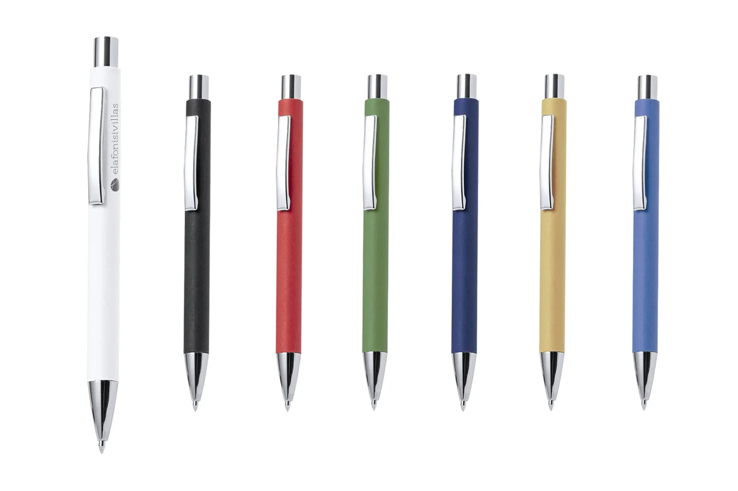 Κομψό στυλό με κουμπιά με βαρέλι από ανακυκλωμένο χαρτί και γυαλιστερά ασημένια μεταλλικά εξαρτήματα. Μπλε μελάνι και διαθέσιμο σε μεγάλη γκάμα χρωμάτων.