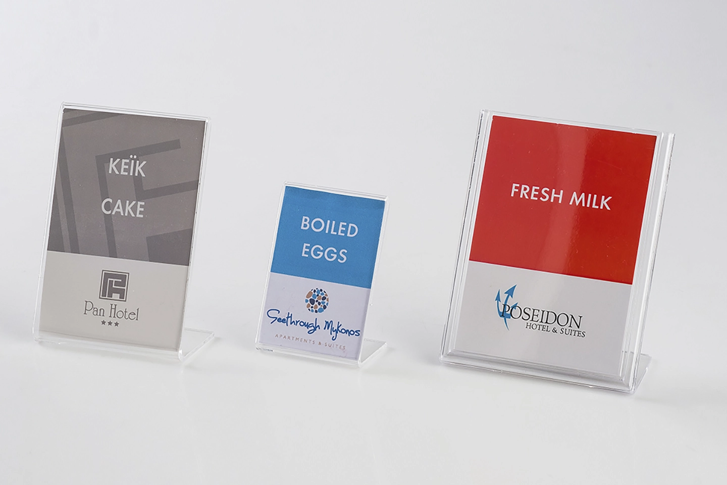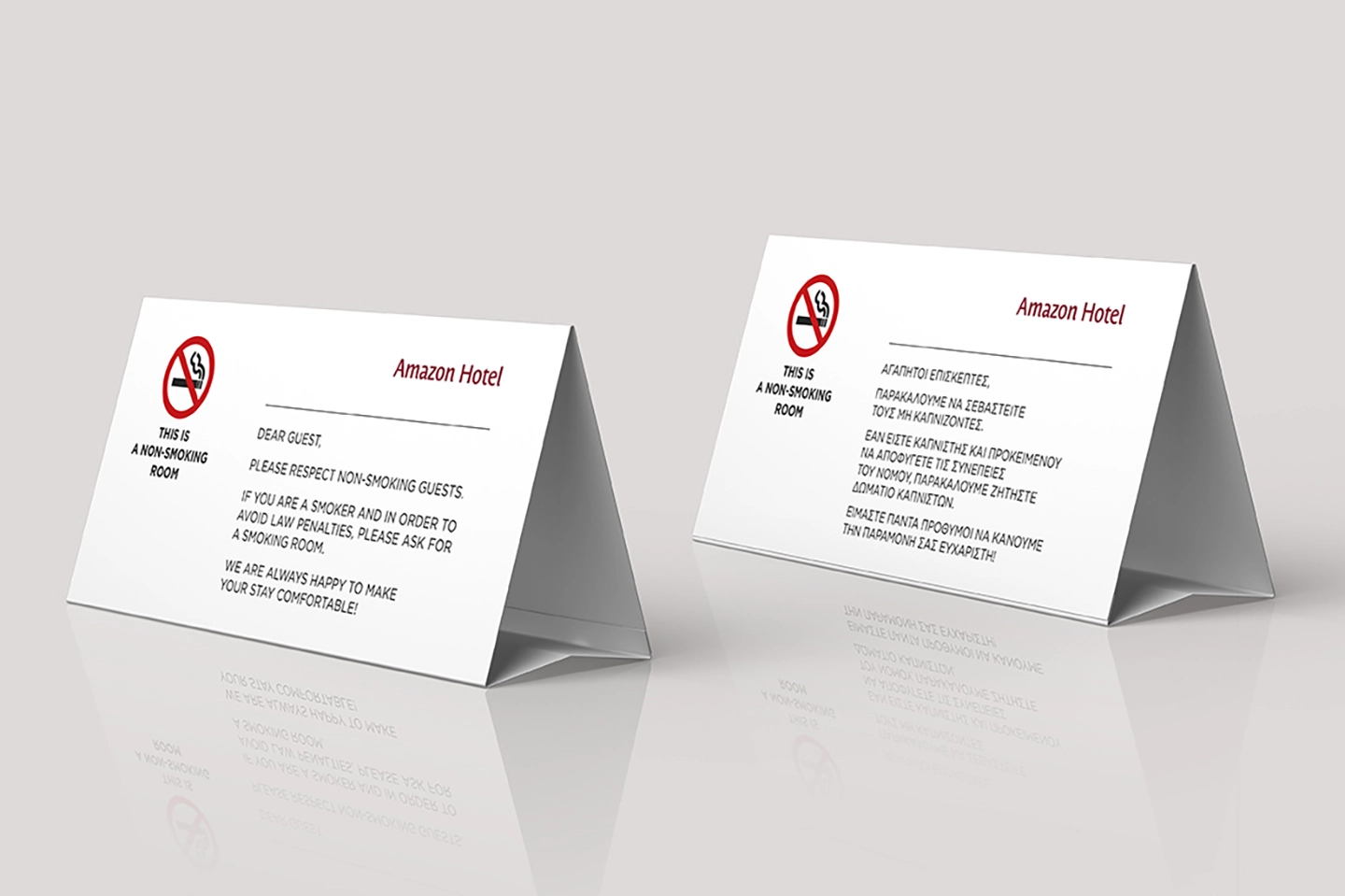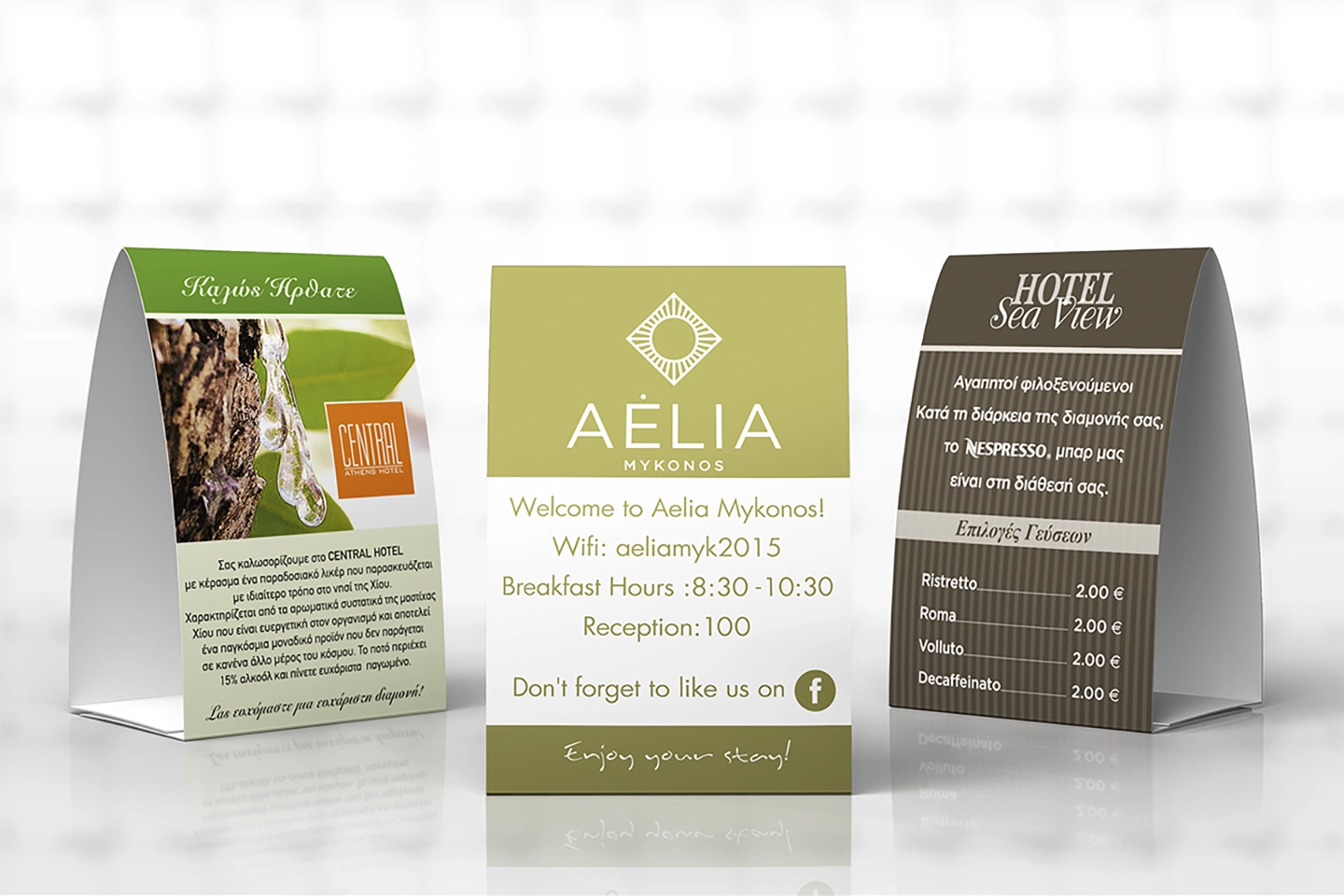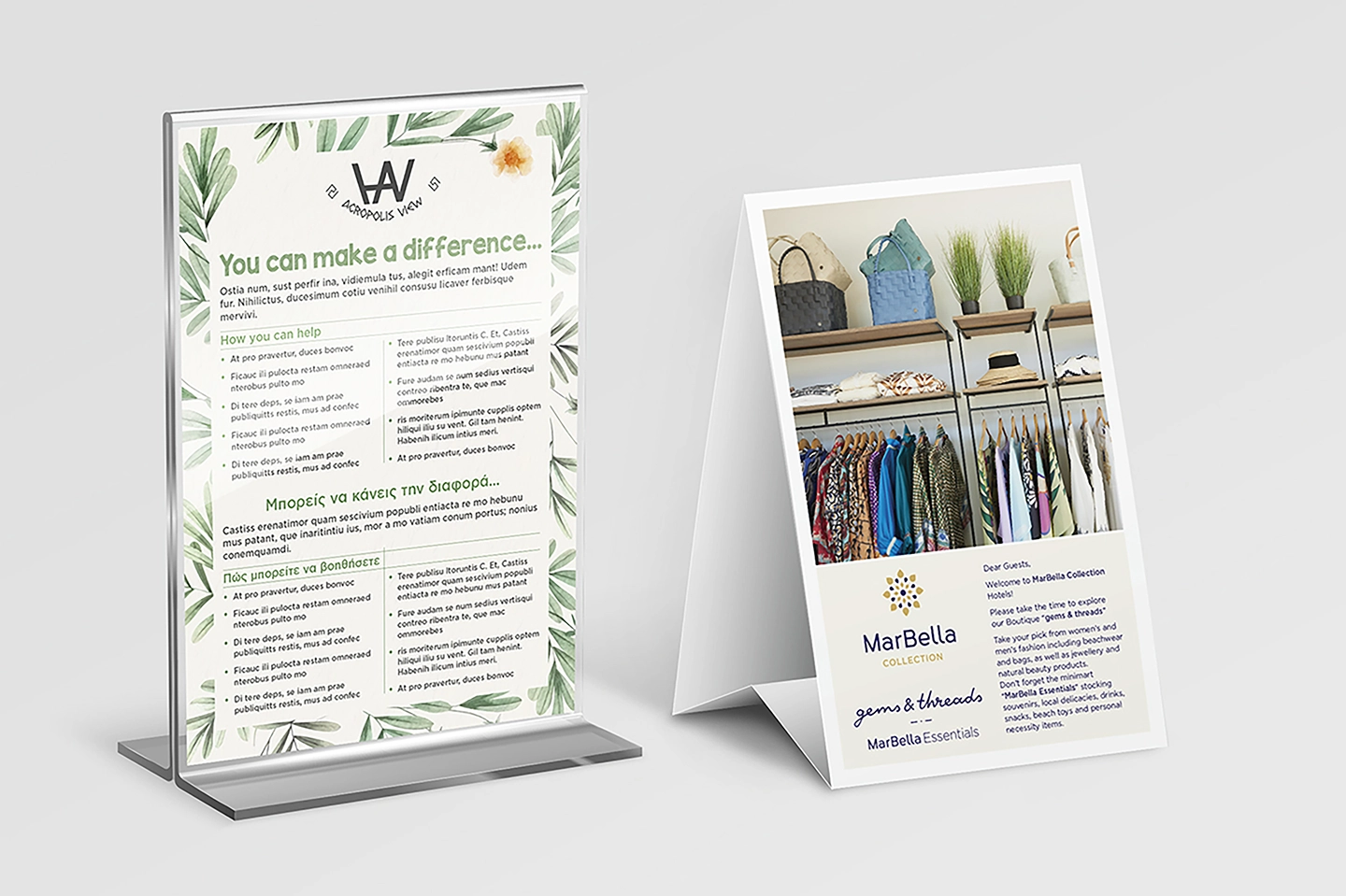 Τα επιτραπέζια stands της εταιρείας μας συνδυάζουν κομψό design, σταθερότητα και λειτουργικότητα. Ιδανικά για qrcode τιμοκαταλόγων και reviews, ενημερωτικών μηνυμάτων κατασκευάζονται από χαρτί, plexiglass ή PVC υψηλής ποιότητας και μπορούν να προσαρμοστούν με το λογότυπο σας, ενισχύοντας την επαγγελματική εικόνα και αξιοπιστία της επιχείρησής σας.