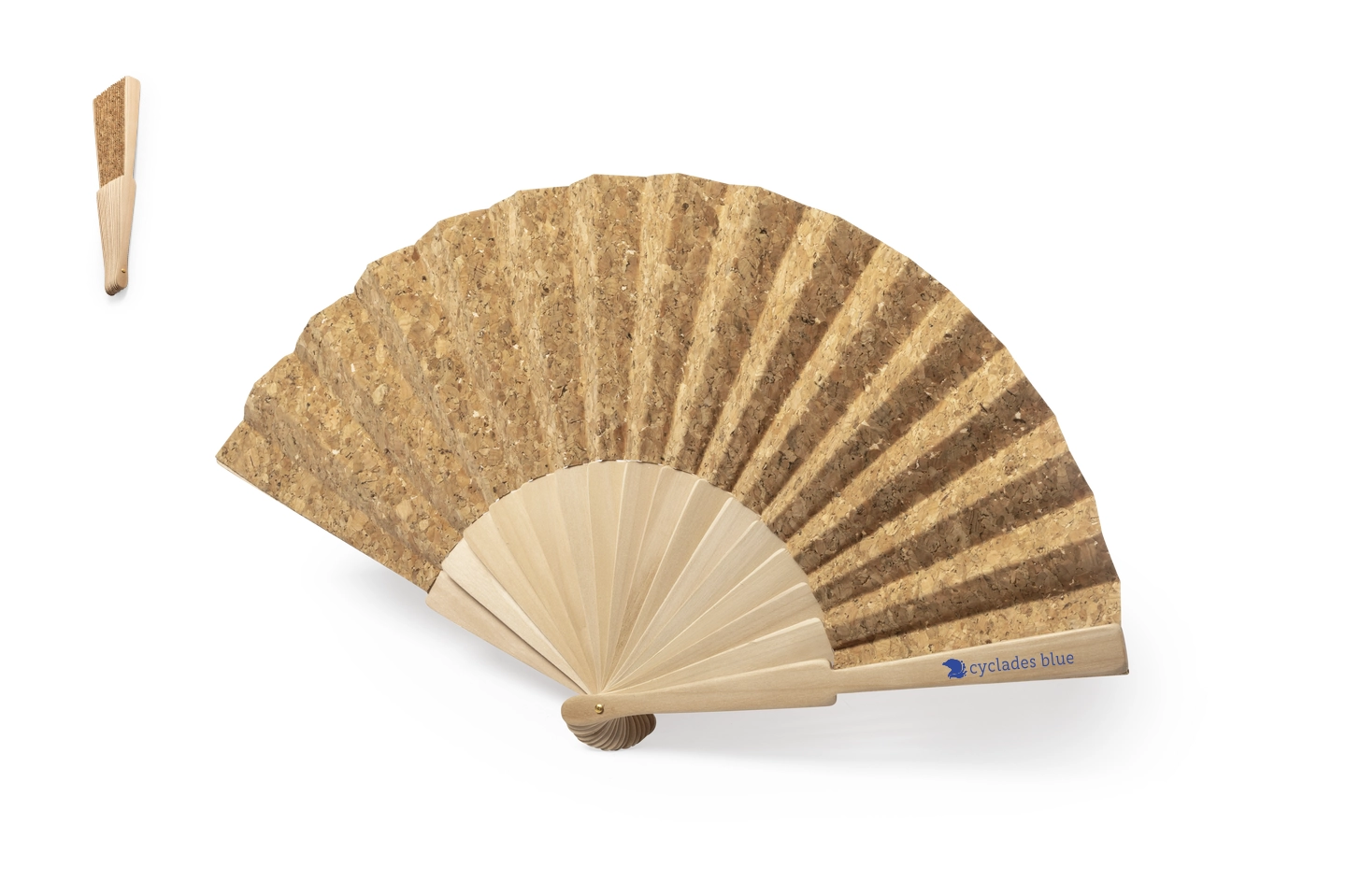 Βεντάλια Nature Line με ξύλινες νευρώσεις και ύφασμα από φυσικό φελλό.