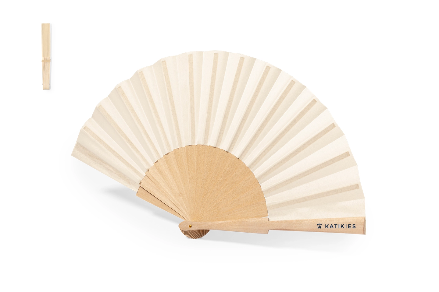 Βεντάλια κατασκευασμένη με ξύλινες νευρώσεις και ύφασμα σε συνδυασμό βαμβακιού και πολυεστέρα.